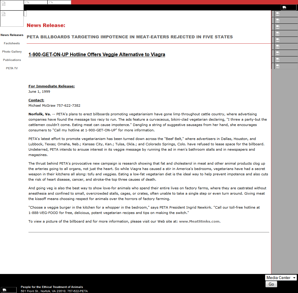 The bleeding-heart PeTA sect has a press-release about the ad, 1999:
