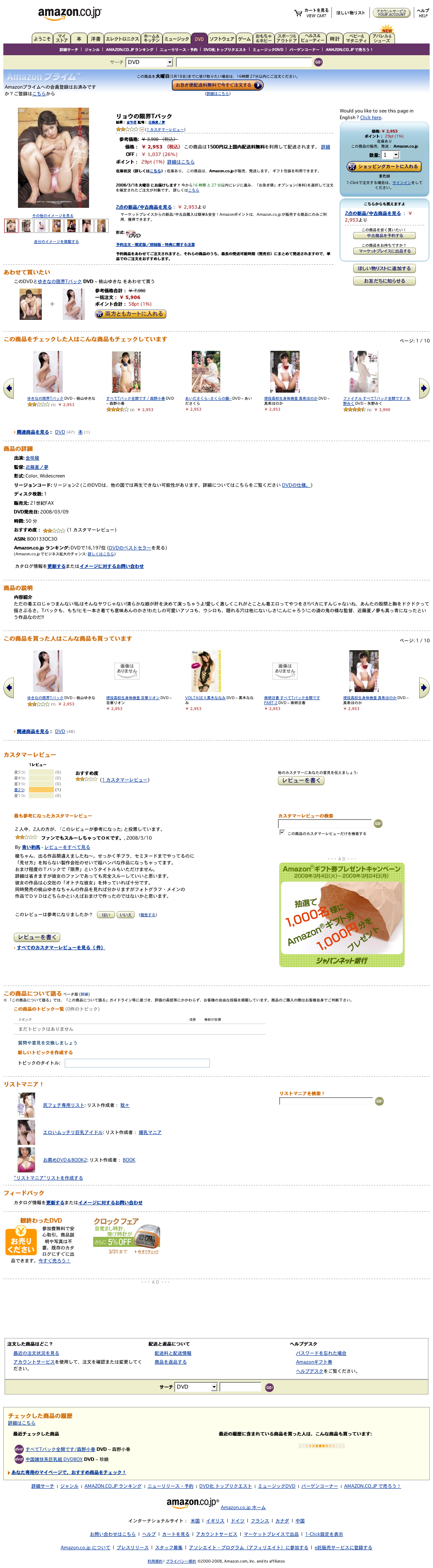 Screenshot of the whole web page: amazon_jp_200803.png