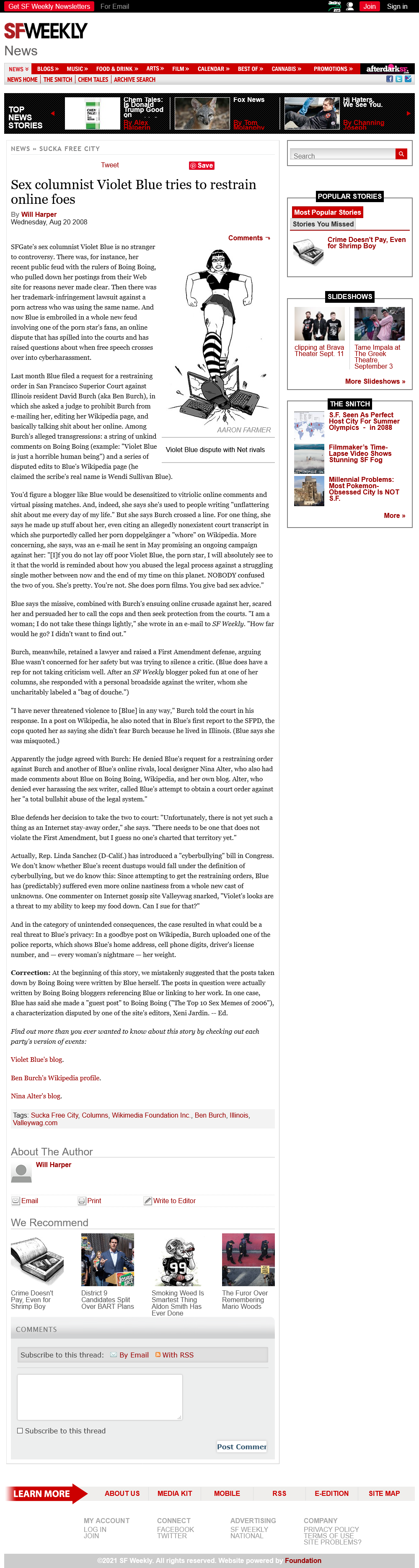 http://www.sfweekly.com/2008-08-20/news/sex-columnist-violet-blue-tries-to-restrain-online-foes/- (local copy Sex_columnist_Violet_Blue_tries_to_restrain_online_foes.txt • Violet_Blue_20080820_By_Will_Harper_20210605.png)