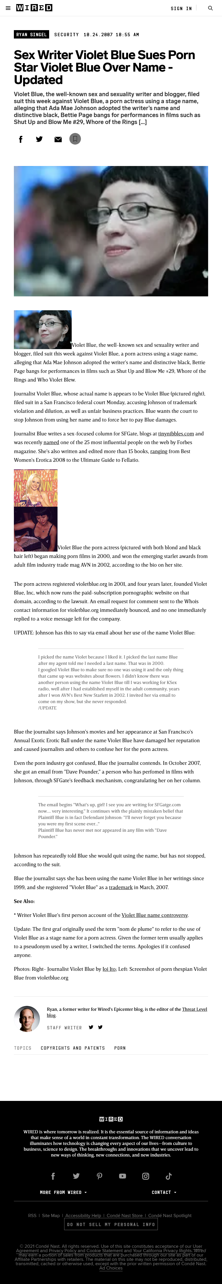 - Sex Writer Violet Blue Sues Porn Star Violet Blue Over Name – Updated